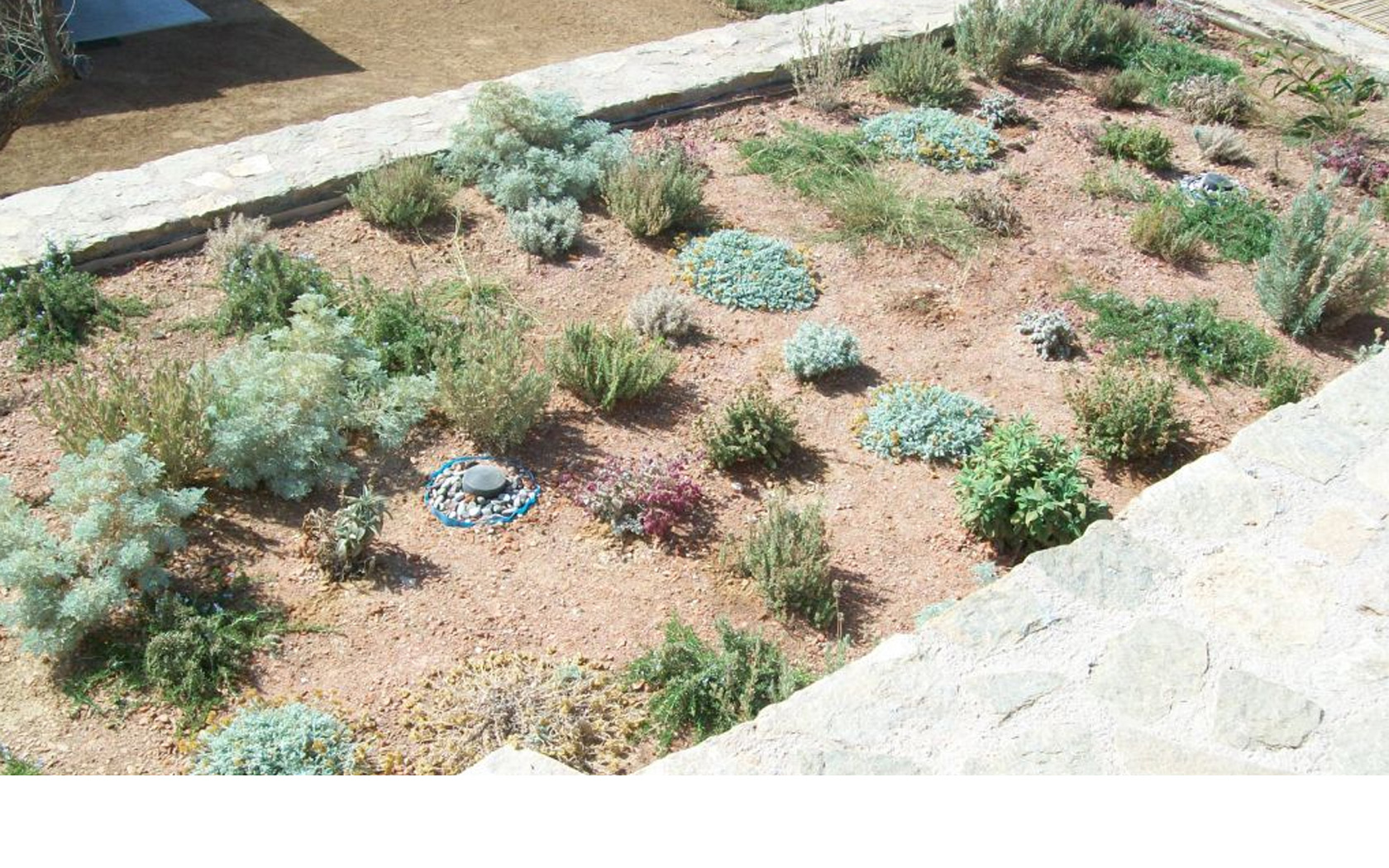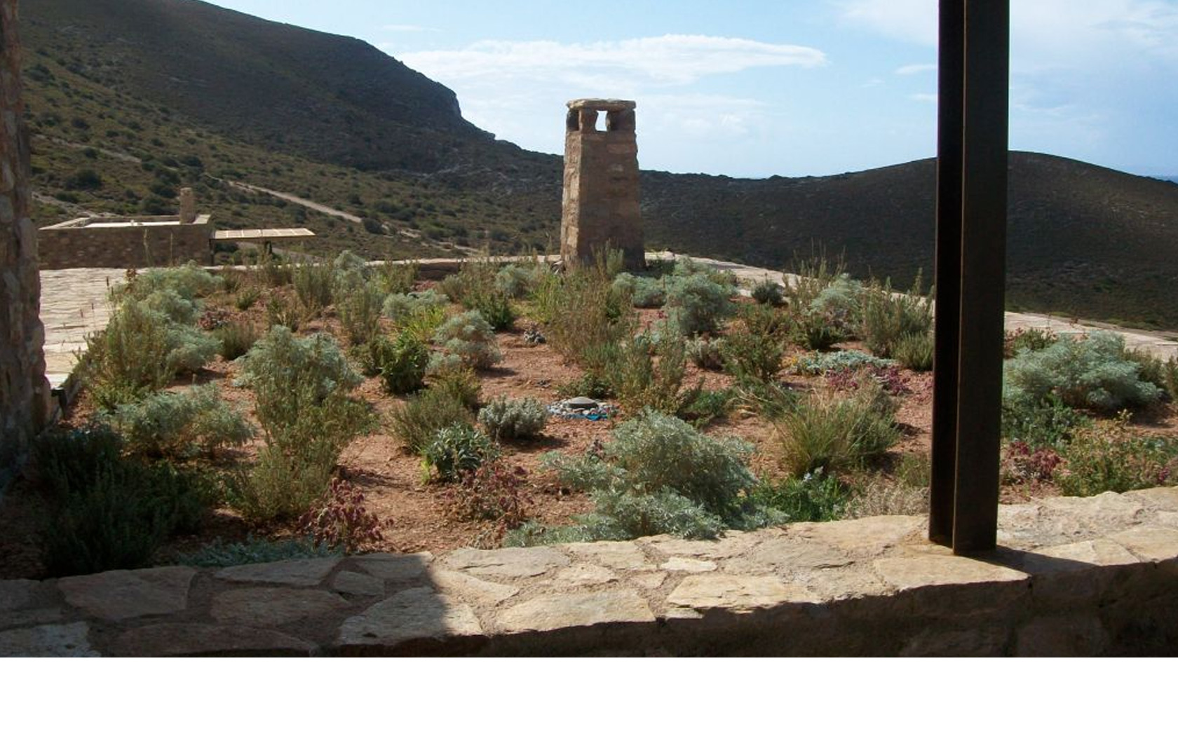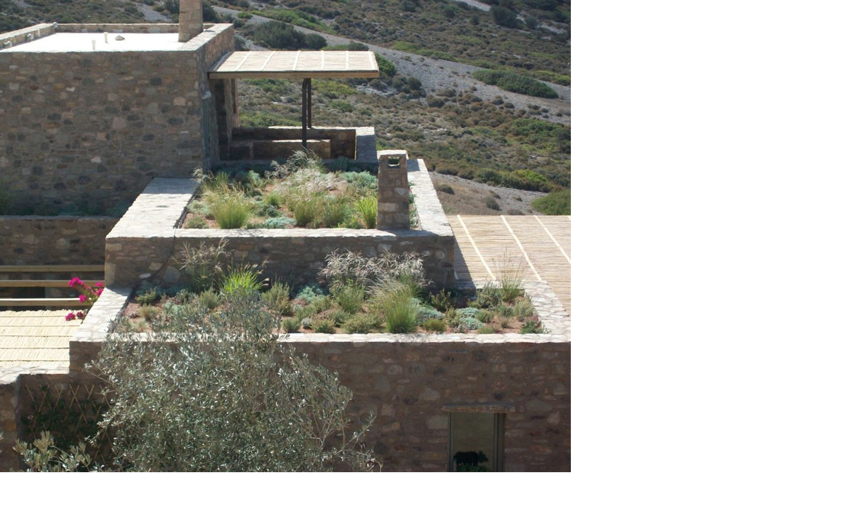 Χρησιμοποιήθηκαν ενδημικά φυτά με σκοπό την ένταξη των δωμάτων στο τοπίο των Κυκλάδων.