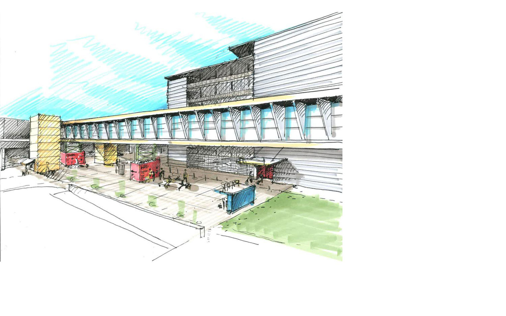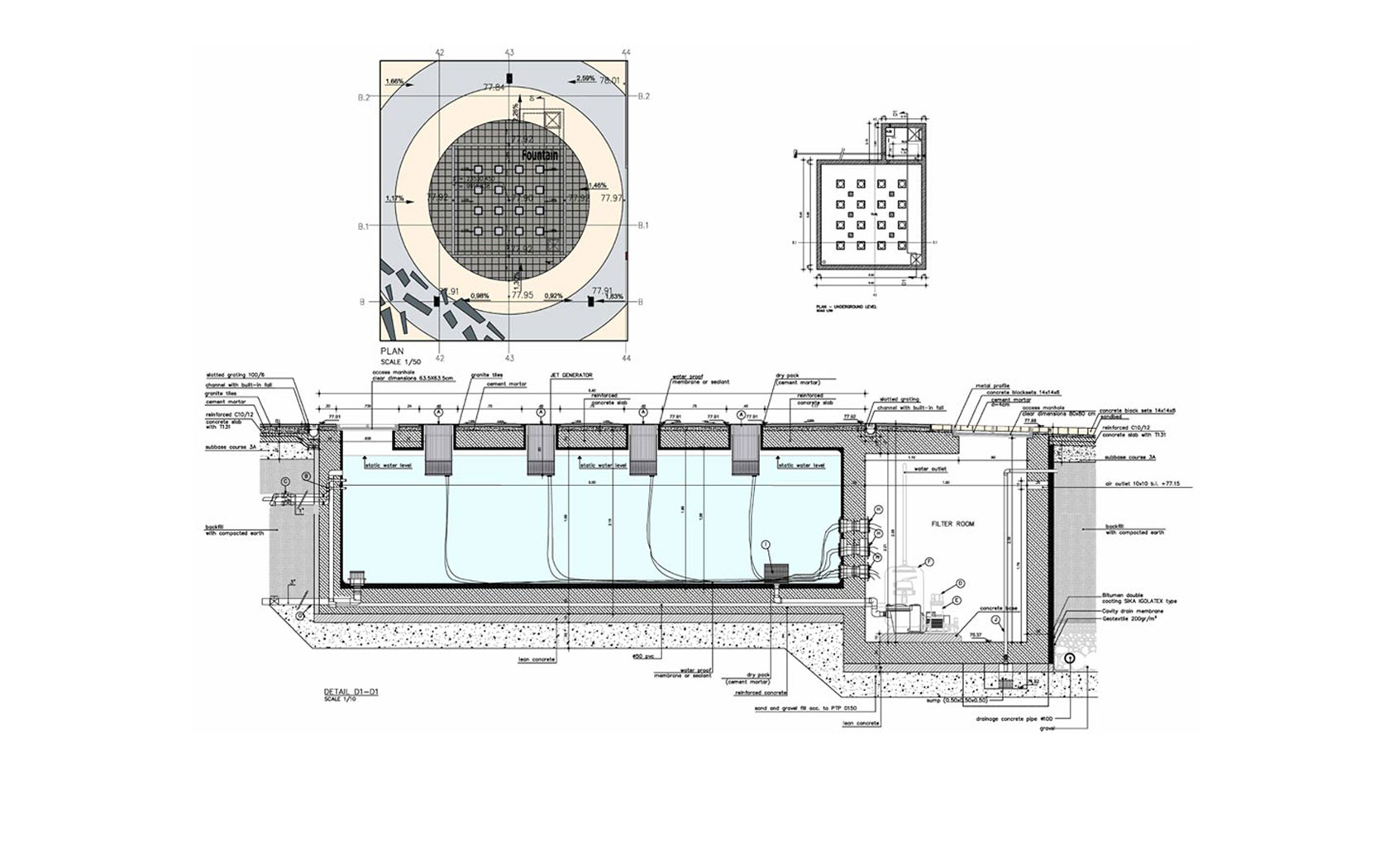 Δημιουργήθηκε στην είσοδο του Κτιρίου μία νέα πλατεία όπου κυριαρχεί το υδάτινο στοιχείο με την μορφή πιδάκων. Βασικός στόχος ήταν να σχεδιαστεί μια πλατεία που αφενός να αποτελεί σημείο αναφοράς στους χρήστες και αφετέρου να είναι ένας ευχάριστος χώρος εισόδου στο Κτίριο Στάθμευσης.