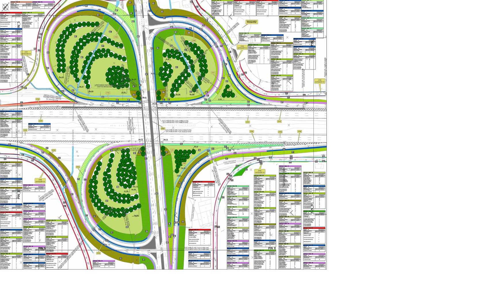 Οι φυτεύσεις στους ισόπεδους Κόμβους και στις Κάτω Διαβάσεις, στοχεύουν στην ολοκλήρωση του οδικού έργου από τεχνική άποψη και στην αισθητική βελτίωση αυτού. Παράλληλα βελτιώνουν την οπτική καθοδήγηση των χρηστών του έργου, αυξάνοντας την αίσθηση άνεσης των οδηγών και την οδική ασφάλεια. Επί πλέον, με κατάλληλη διάταξη των φυτεύσεων, διακόπτεται η μονοτονία στην περιοχή των κόμβων και των Κάτω Διαβάσεων.