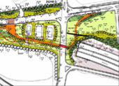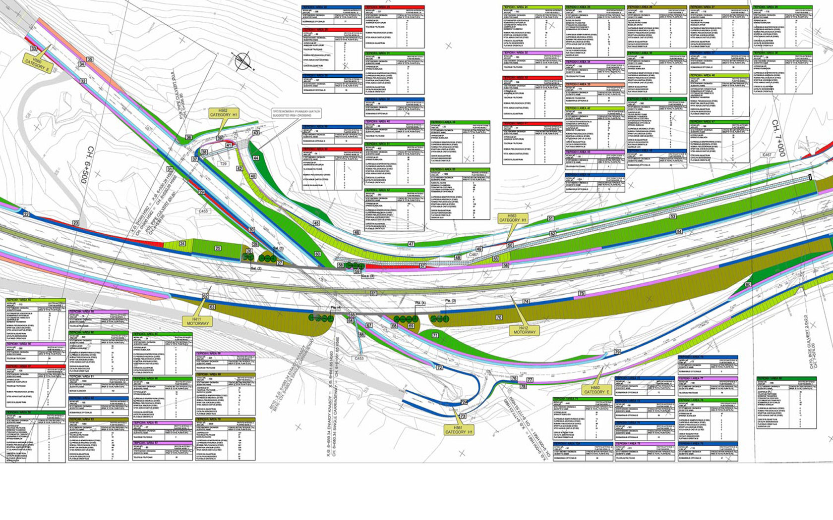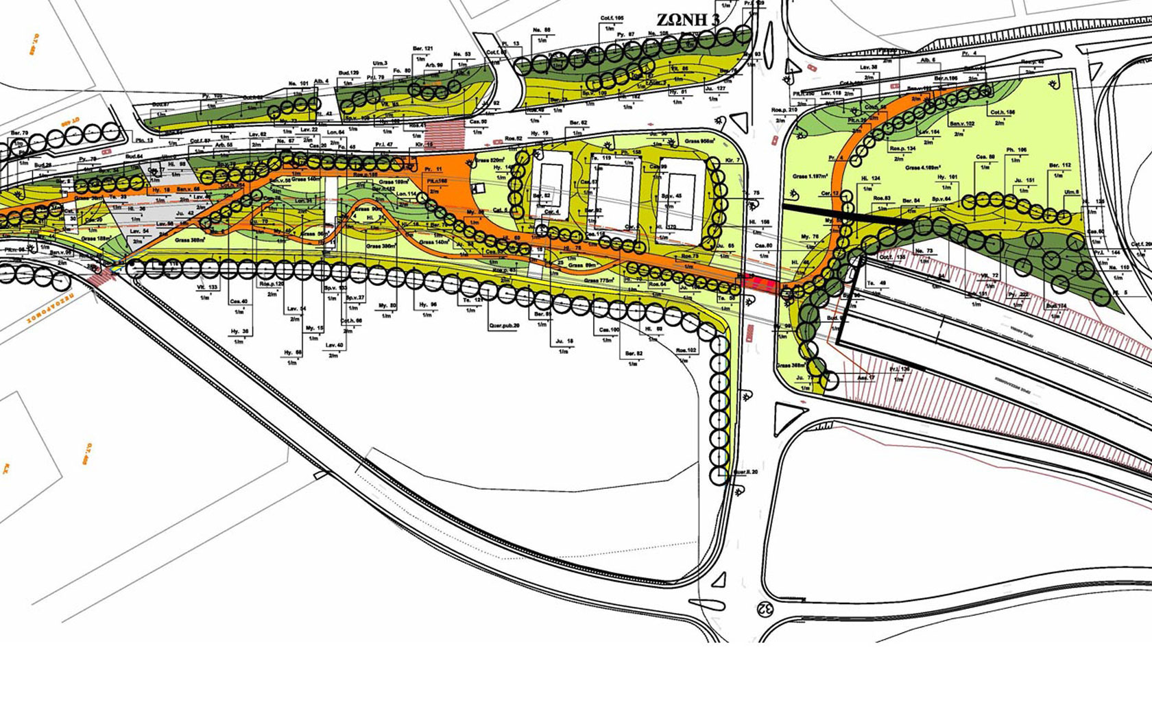 Η μελέτη περιελάμβανε την αποκατάσταση των πρανών και των κόμβων του οδικού άξονα, καθώς και το σχεδιασμό Πάρκου 50 στρεμμάτων άνωθεν από το Cut & Cover της εισόδου στην πόλη της Κατερίνης.